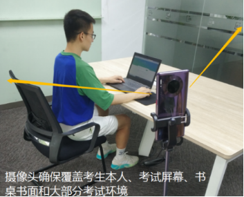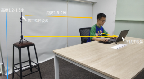 桌面只能擺放筆、空白草稿紙和身份證件,嚴(yán)謹(jǐn)擺放與考試無關(guān)的物品。搭建考試環(huán)境見下圖所示。